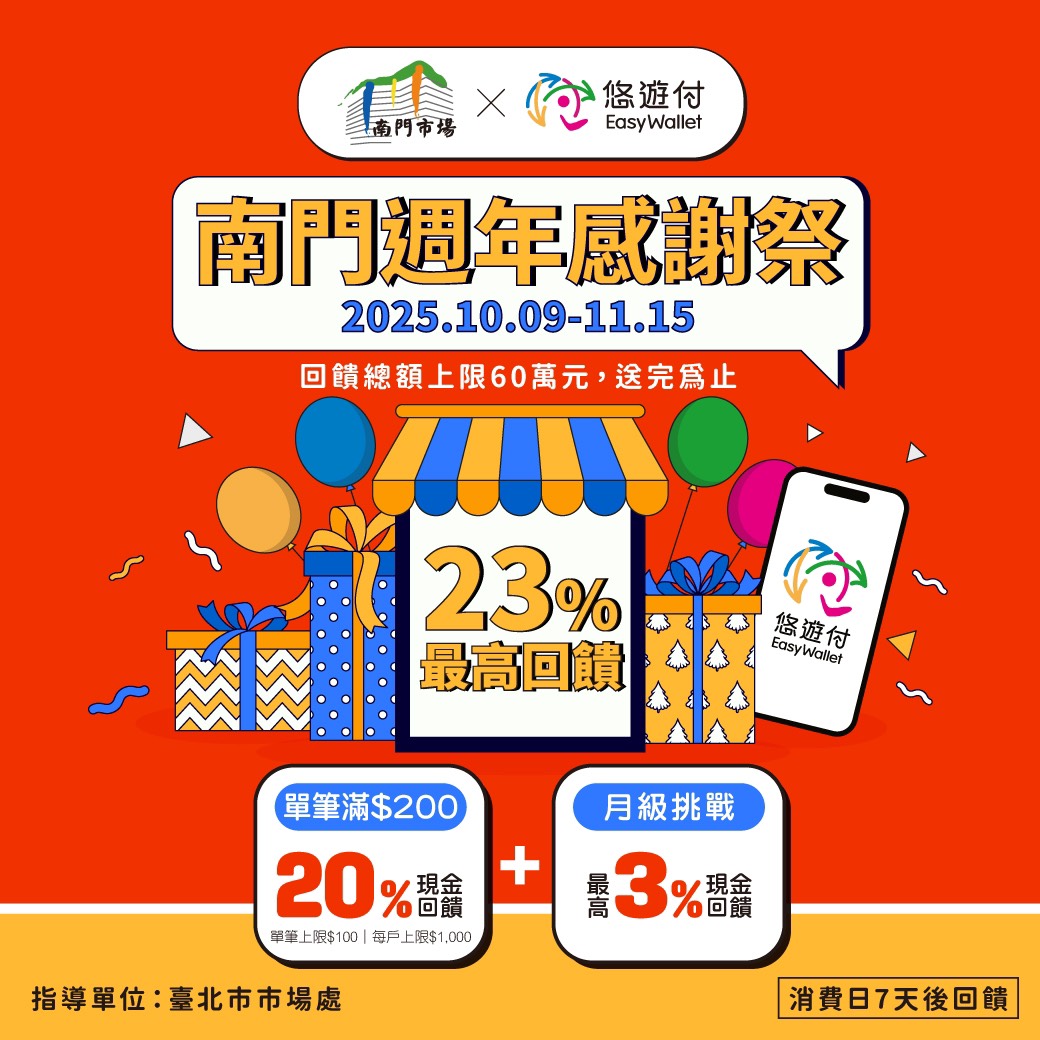 菜籃族福音! 南門市場攜手悠遊付推「週年感謝祭」滿額享20%回饋金